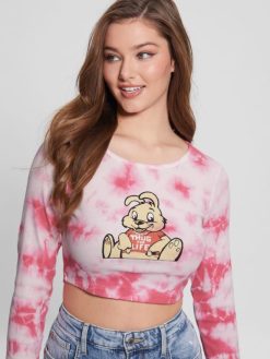 GUESS γυναίκες Μπλουζάκι γραφικό λαγουδάκι πρωινό ροζ μούλτι ενδύματα J46DJ1278