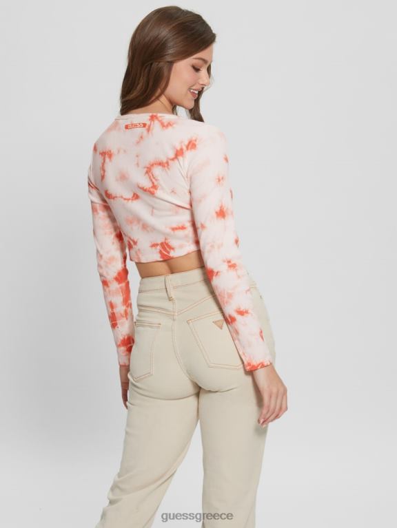 GUESS γυναίκες μακρυμάνικο μπλουζάκι eco monica chiffon άνθιση μανταρινιού ενδύματα J46DJ1122
