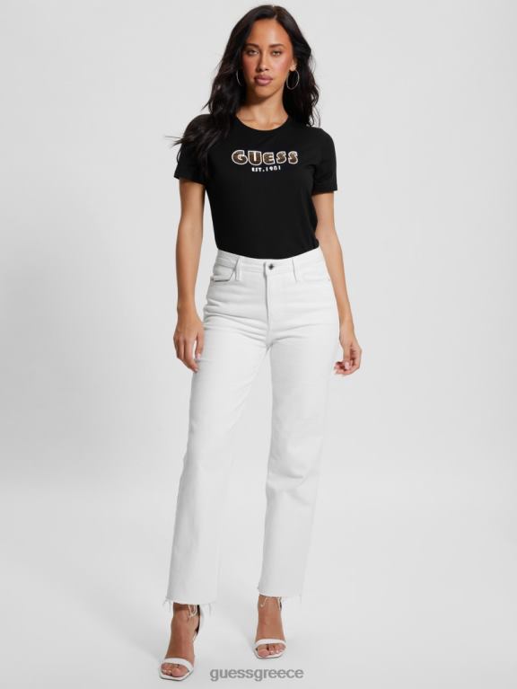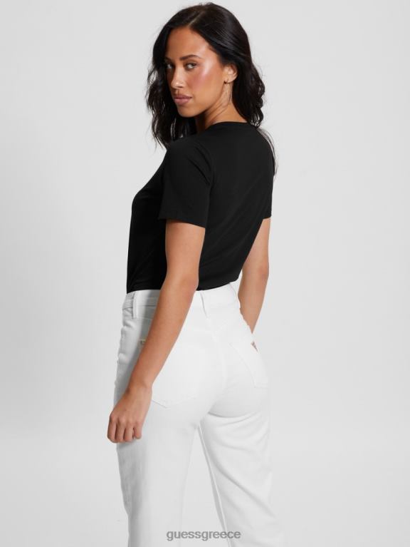 GUESS γυναίκες Μπλουζάκι με λογότυπο από στρας με οικολογικό λαιμόκοψη μαύρος ενδύματα J46DJ1295