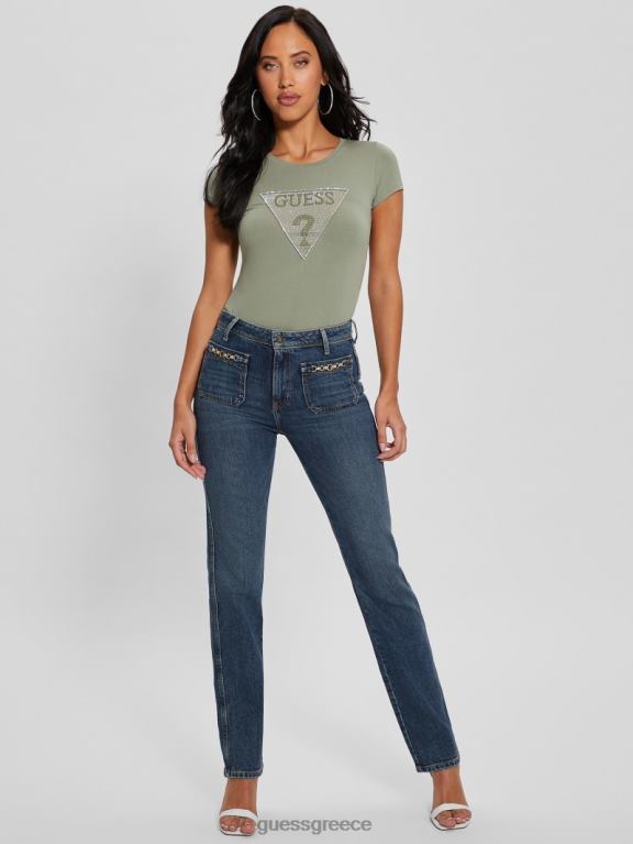 GUESS γυναίκες μπλουζάκι με λογότυπο οικολογικού κρυστάλλου φασκόμηλο του ωκεανού ενδύματα J46DJ1014