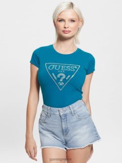 GUESS γυναίκες μπλουζάκι με λογότυπο οικολογικού κρυστάλλου φασκόμηλο του ωκεανού ενδύματα J46DJ1014