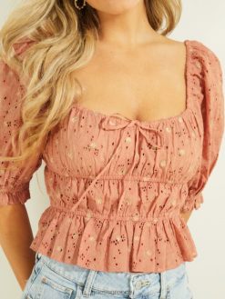 GUESS γυναίκες avery eyelet κεντημένο τοπ καθαρό λευκό ενδύματα J46DJ1042