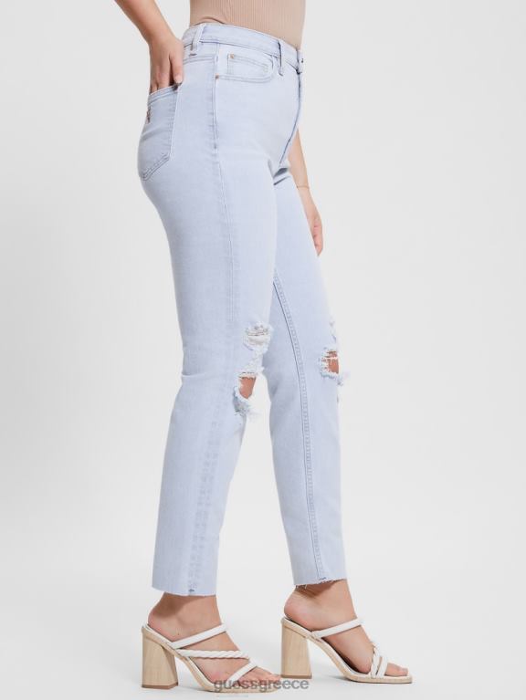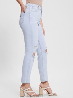 GUESS γυναίκες οικολογικά κατεστραμμένα μαμά τζιν φωτεινό μπλε ενδύματα J46DJ19