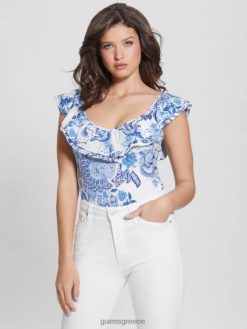 GUESS γυναίκες οικολογικό βολάν βερόνικα τοπ μπλε συλλεκτικά ενδύματα J46DJ1292