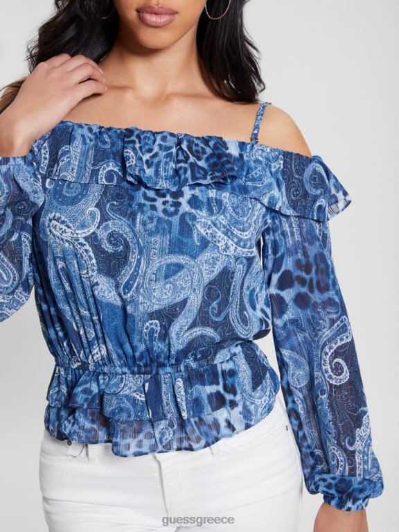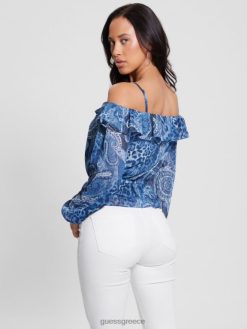 GUESS γυναίκες οικολογικό λουσί μπλουζάκι έξω από τους ώμους σκανδιναβικό κασμίρ ενδύματα J46DJ1075
