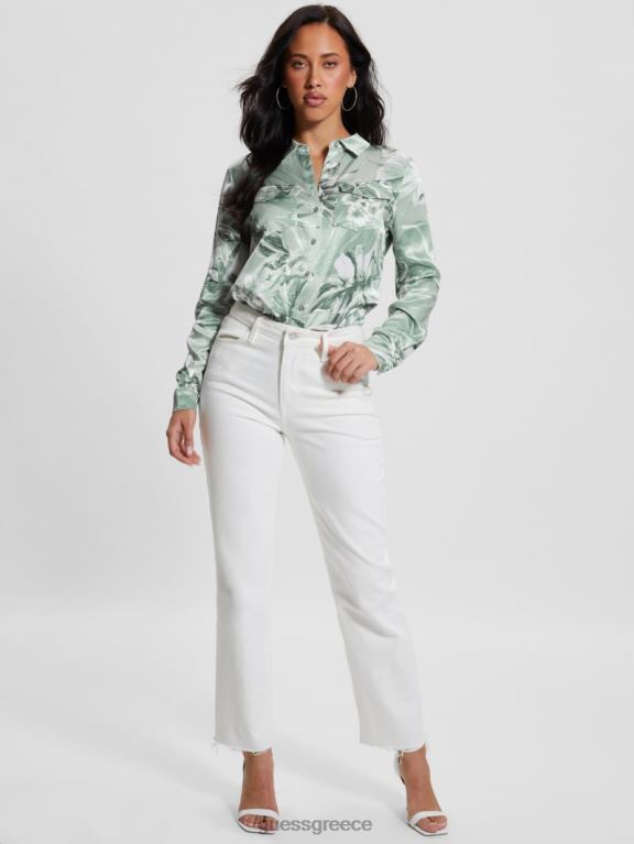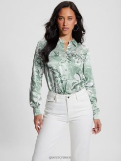 GUESS γυναίκες οικολογικό σατέν πουκάμισο Linda στάμπα ζούγκλας με σκονισμένη φτέρη ενδύματα J46DJ930