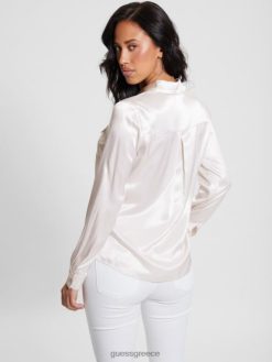 GUESS γυναίκες οικολογικό σατέν πουκάμισο Linda βουβή πέτρα ενδύματα J46DJ926