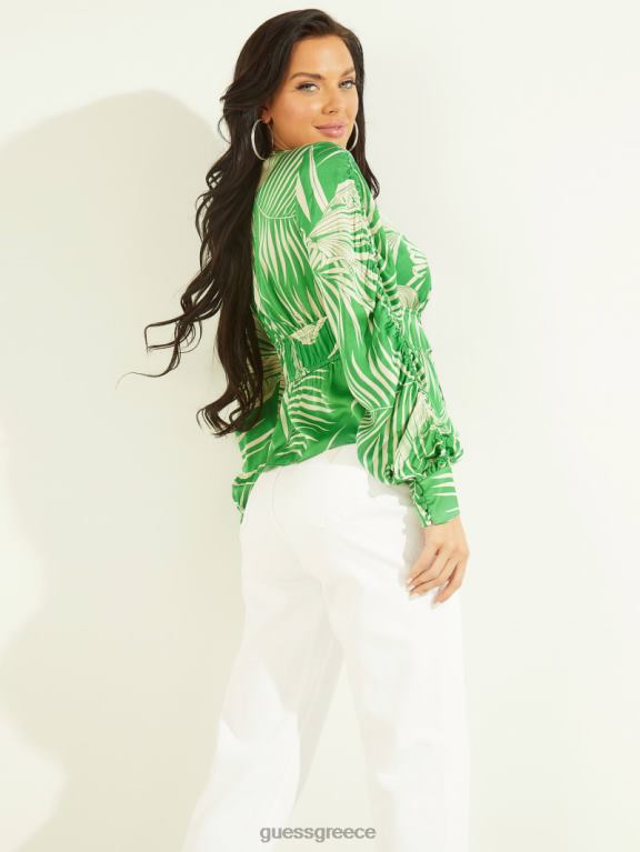 GUESS γυναίκες οικολογικό τοπ φαιέ στάμπα παλάμης baja πράσινο ενδύματα J46DJ1609