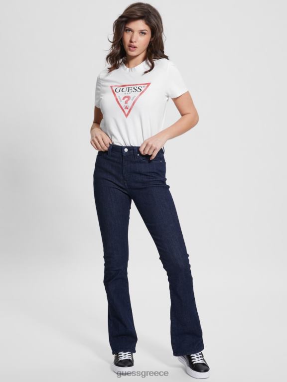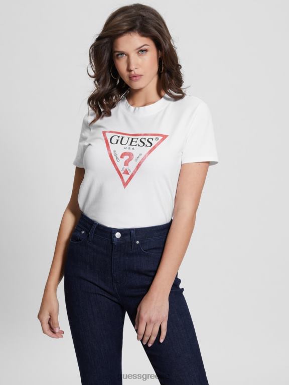 GUESS γυναίκες οικολογικό τρίγωνο λογότυπο μπλουζάκι καθαρό λευκό ενδύματα J46DJ1217
