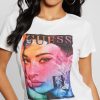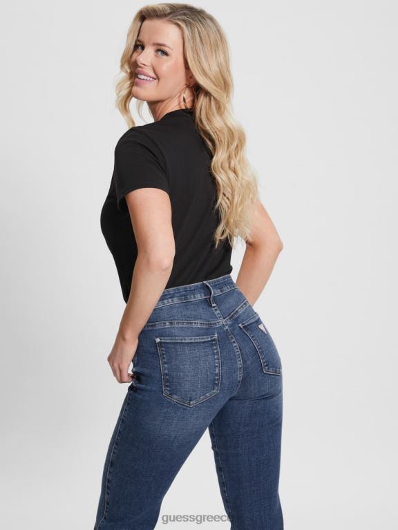 GUESS γυναίκες οικολογικό τρίγωνο λογότυπο μπλουζάκι μαύρος ενδύματα J46DJ1537