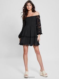 GUESS γυναίκες οικολογικό φόρεμα katerina off-the-shoulder μαύρος ενδύματα J46DJ333