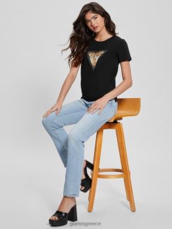 GUESS γυναίκες οικολογικό τρίγωνο μπλουζάκι ζώων μαύρος ενδύματα J46DJ1129