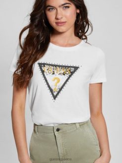 GUESS γυναίκες οικολογικό τρίγωνο μπλουζάκι ζώων λευκή κρέμα ενδύματα J46DJ1255