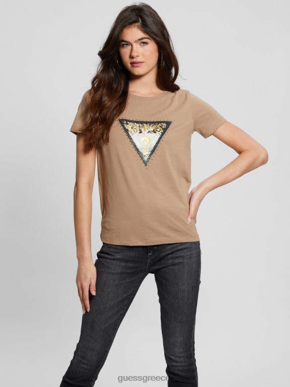 GUESS γυναίκες οικολογικό τρίγωνο μπλουζάκι ζώων βρεγμένη άμμος ενδύματα J46DJ1056