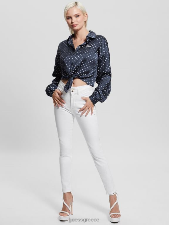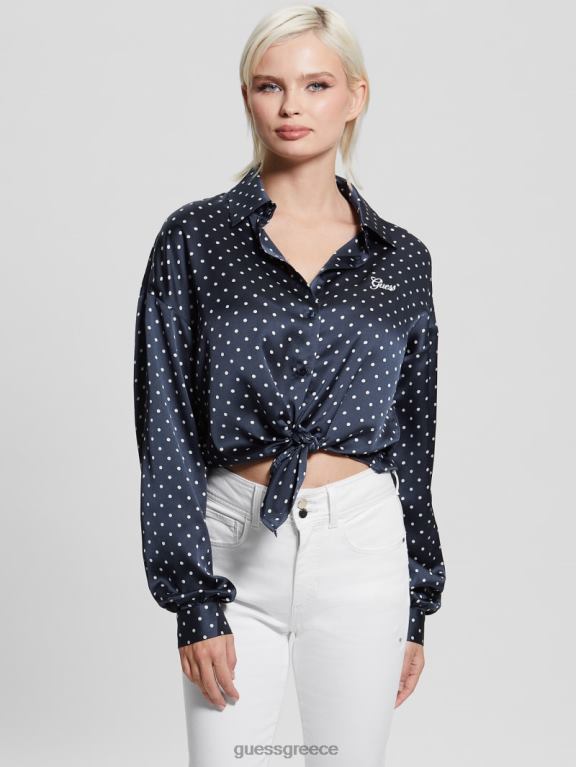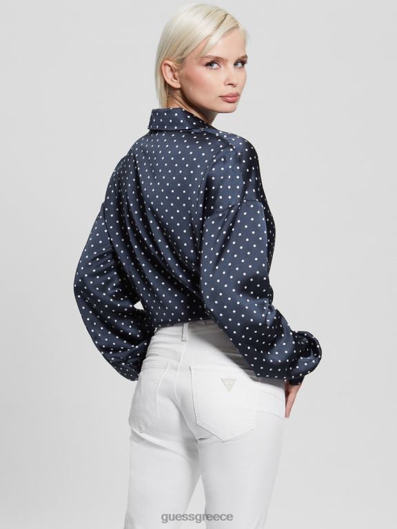 GUESS γυναίκες οικολογικό φιόγκο πουκάμισο jun μαυρισμένο μπλε pois ενδύματα J46DJ1181