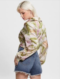 GUESS γυναίκες τζιν πουκάμισο με μάτι πράσινο λουλούδι ενδύματα J46DJ291