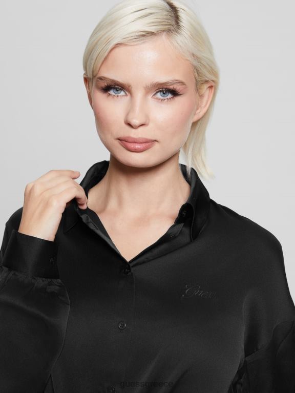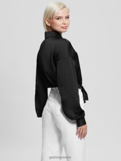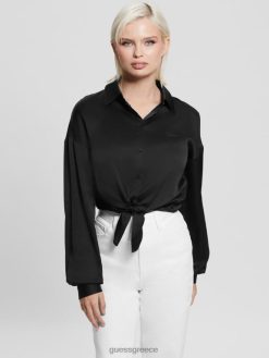 GUESS γυναίκες οικολογικό φιόγκο πουκάμισο jun μαύρος ενδύματα J46DJ1007
