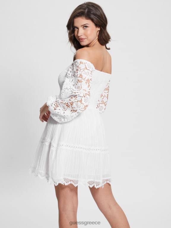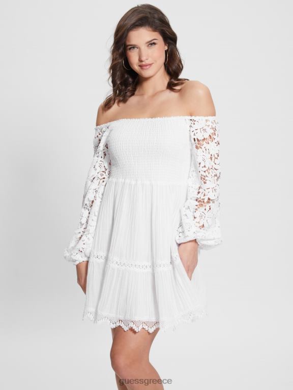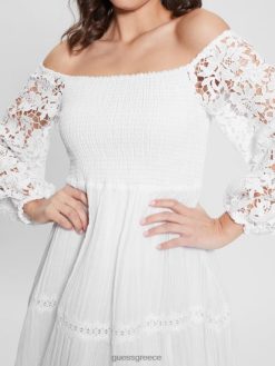 GUESS γυναίκες οικολογικό φόρεμα katerina off-the-shoulder καθαρό λευκό ενδύματα J46DJ454