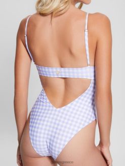 GUESS γυναίκες οικολογικό gingham ολόσωμο μαγιό μικρή λευκή λεβάντα vich ενδύματα J46DJ2550
