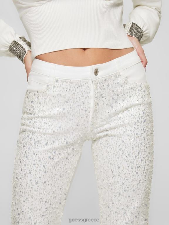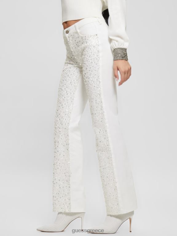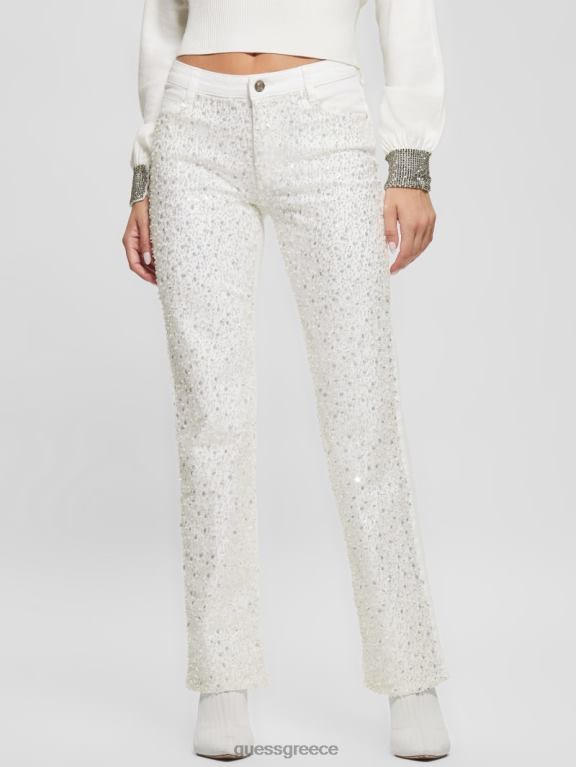 GUESS γυναίκες παγιέτες σέξι ίσιο παντελόνι καθαρό λευκό multi ενδύματα J46DJ273