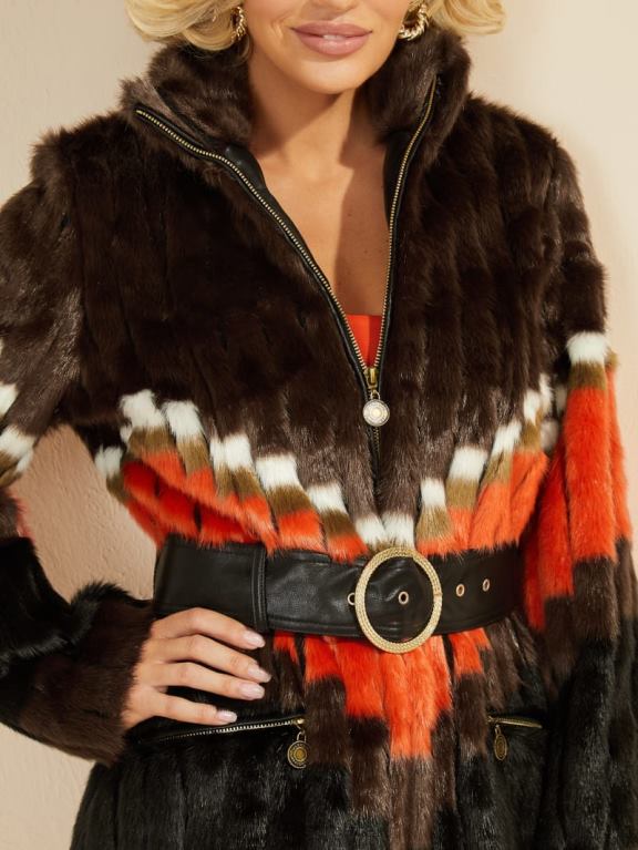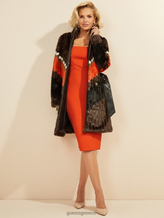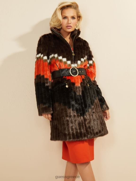 GUESS γυναίκες παλτό από ψεύτικη γούνα chevron πορτοκαλί ενδύματα J46DJ1934