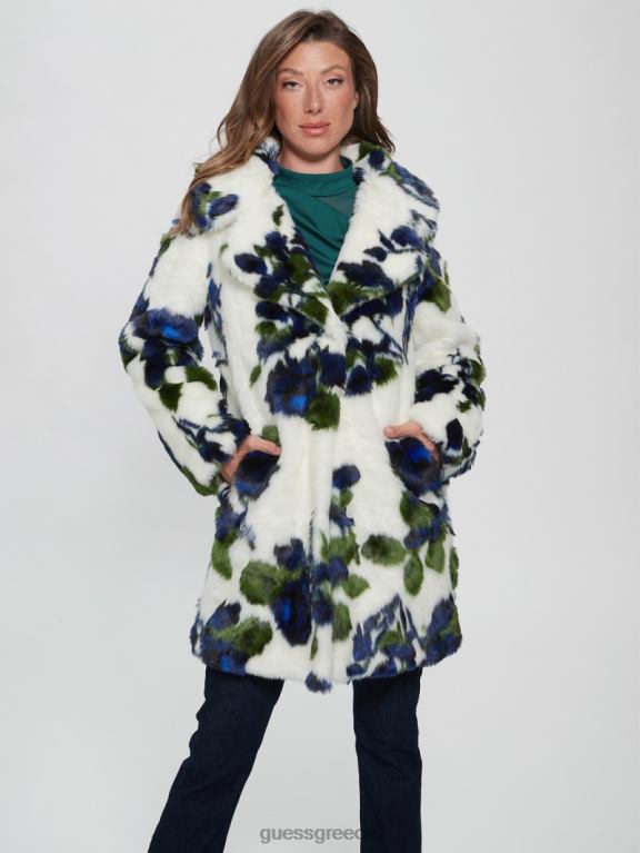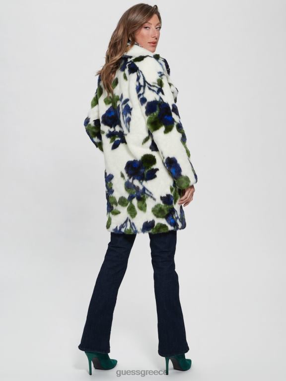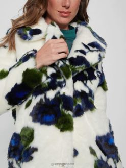 GUESS γυναίκες παλτό magda από ψεύτικη γούνα συνδυασμός μπλε λουλουδιών φαντασίας ενδύματα J46DJ1914