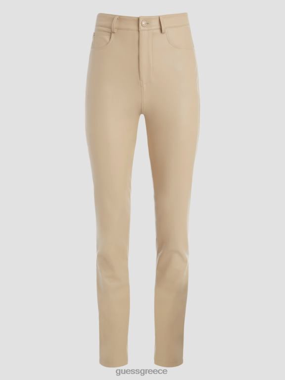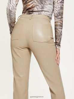GUESS γυναίκες Παντελόνι σε ίσιο πόδι από ψεύτικο δέρμα Kelly μπεζ μπλάνκο ενδύματα J46DJ2251