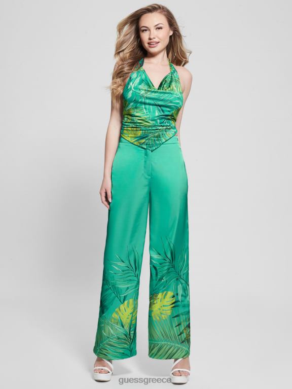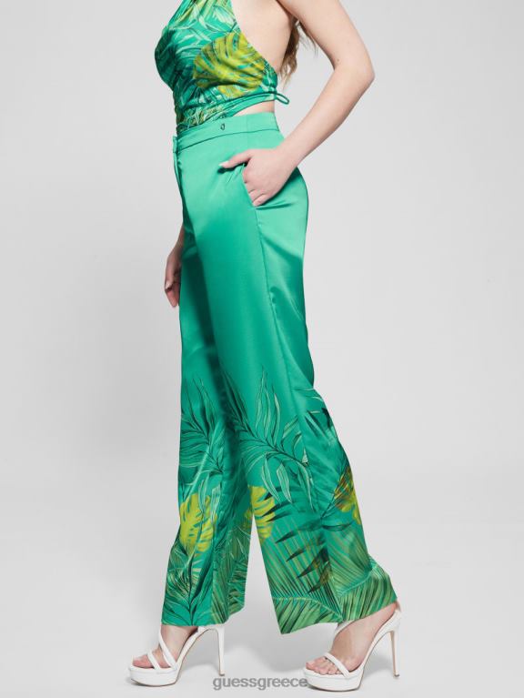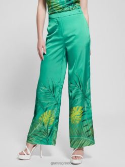 GUESS γυναίκες παντελόνι φαρδύ eco brisilda αυθεντικό γαλαζοπράσινο monstera ενδύματα J46DJ2143
