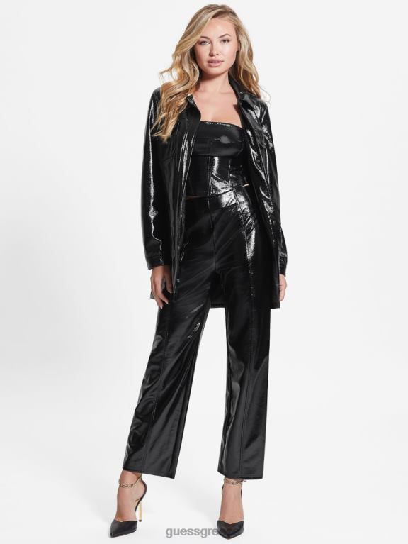 GUESS γυναίκες παντελόνι monica από συνθετικό δέρμα jet black multi ενδύματα J46DJ2220