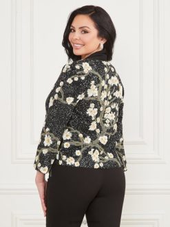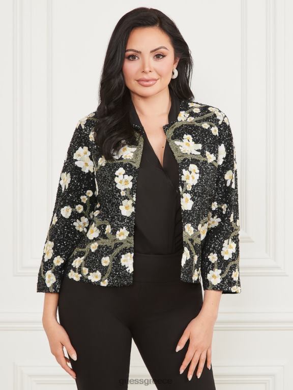 GUESS γυναίκες πολύτιμη κεντημένη παγιέτα μπουφάν άνθος μαύρη σπηλιά ενδύματα J46DJ1874