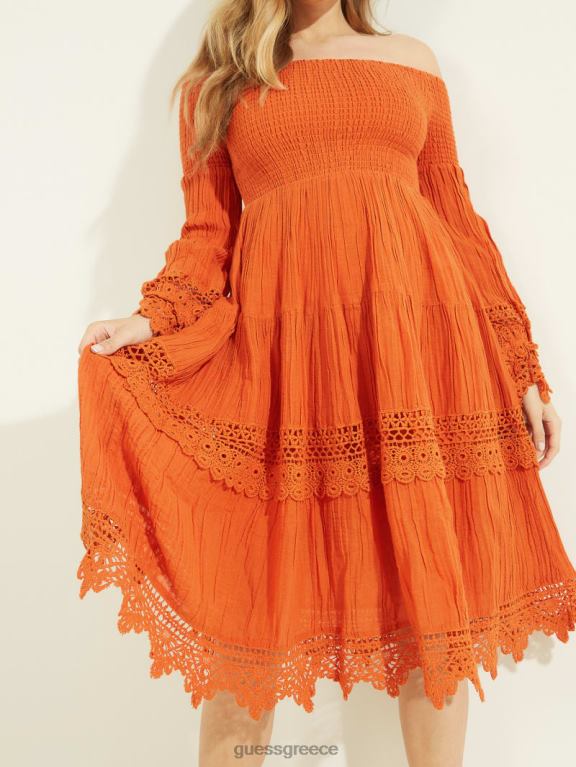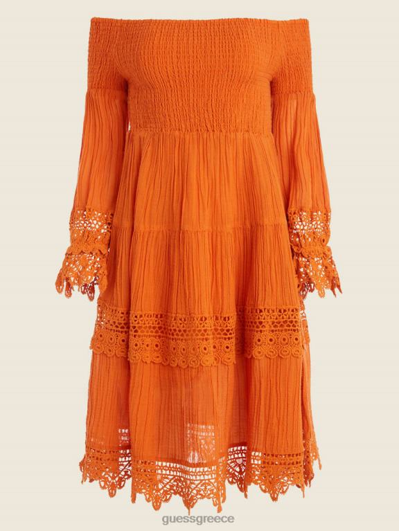 GUESS γυναίκες πορτοκαλί φόρεμα έξω από τους ώμους χρυσό μπλαζ πολυ ενδύματα J46DJ729