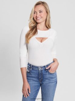 GUESS γυναίκες πουλόβερ eco marion με κομμένο μετάξι λευκή κρέμα ενδύματα J46DJ1491