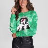 GUESS γυναίκες οικολογικό λουσί μπλουζάκι έξω από τους ώμους μωβ κασμίρ στάμπα ενδύματα J46DJ1046