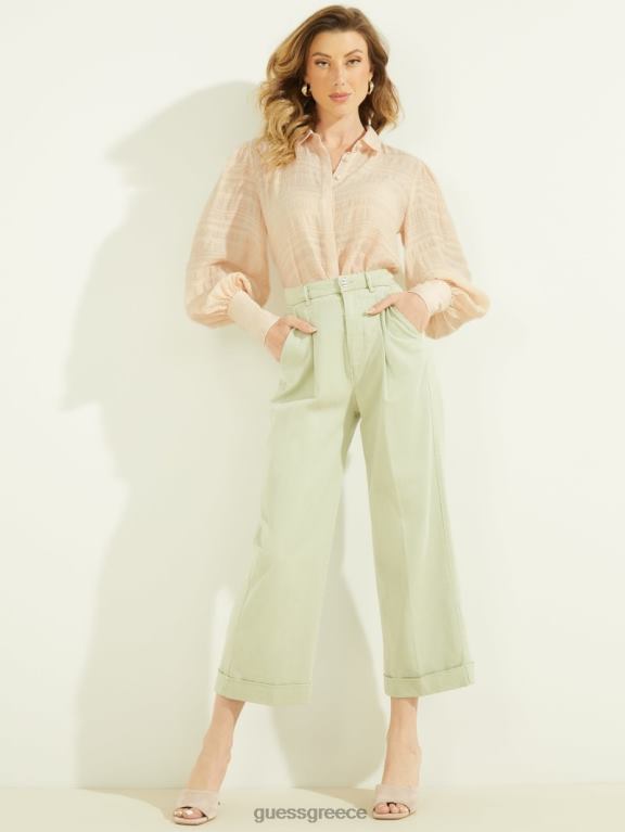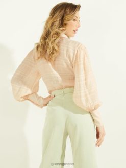 GUESS γυναίκες ραβ τσαλακωμένο πάνω κρέμα κακάο πολυ ενδύματα J46DJ1645