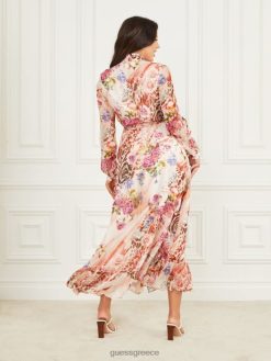 GUESS γυναίκες ροζ μεταξωτό φόρεμα στάμπα σκιάς τριαντάφυλλου ενδύματα J46DJ745