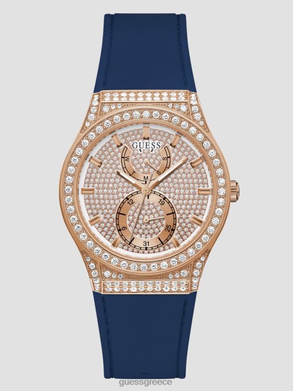 GUESS γυναίκες ρολόι πολλαπλών λειτουργιών από κρυστάλλινη σιλικόνη ροζ χρυσό σε τόνους και μπλε αξεσουάρ J46DJ3612