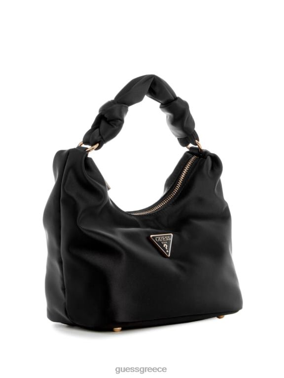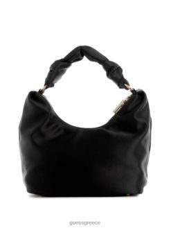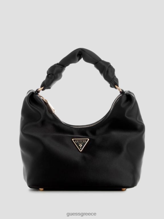GUESS γυναίκες σατέν hobo τσάντα βελίνα μαύρο φλοράλ στάμπα σακούλες J46DJ3014