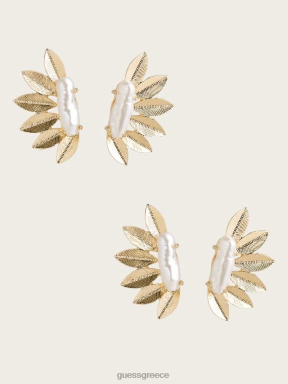 - ένα επιχρυσωμένο σκουλαρίκι από φύλλα 14 καρατίων σε σχέδιο βεντάλιας με ψεύτικο μαργαριτάρι στο κέντρο.