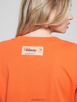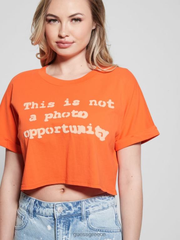 GUESS γυναίκες σλόγκαν crop tee πορτοκαλί λάσπη ενδύματα J46DJ1073