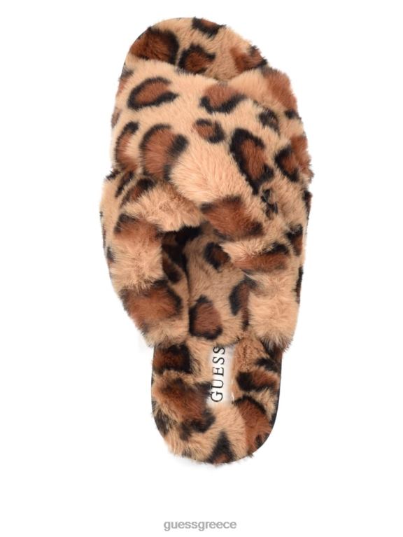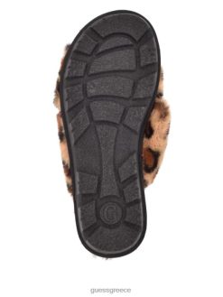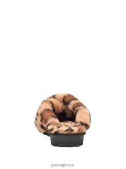 GUESS γυναίκες σταυρωτή γούνινη παντόφλα καφέ multi ύφασμα είδη υπόδησης J46DJ3497