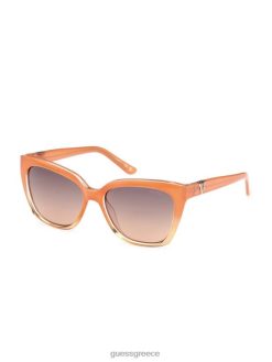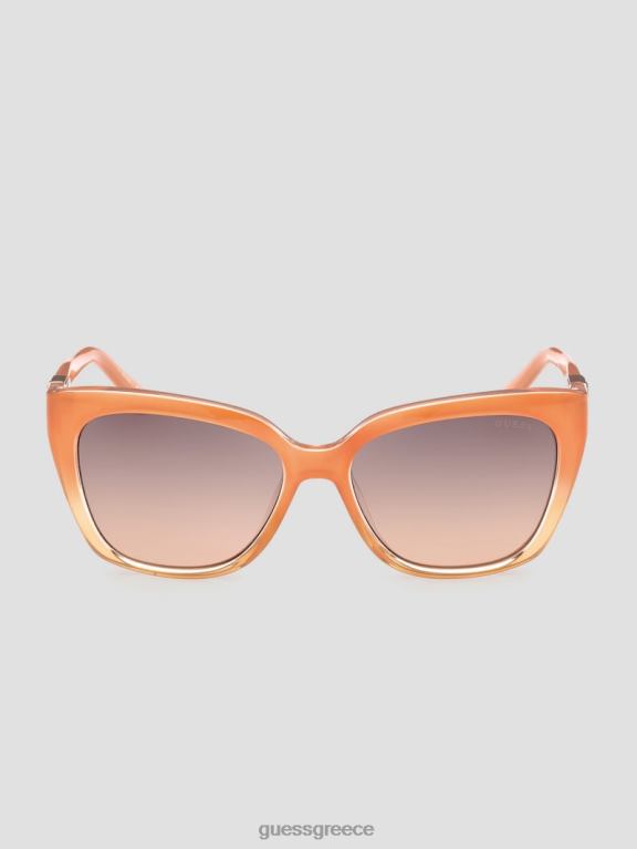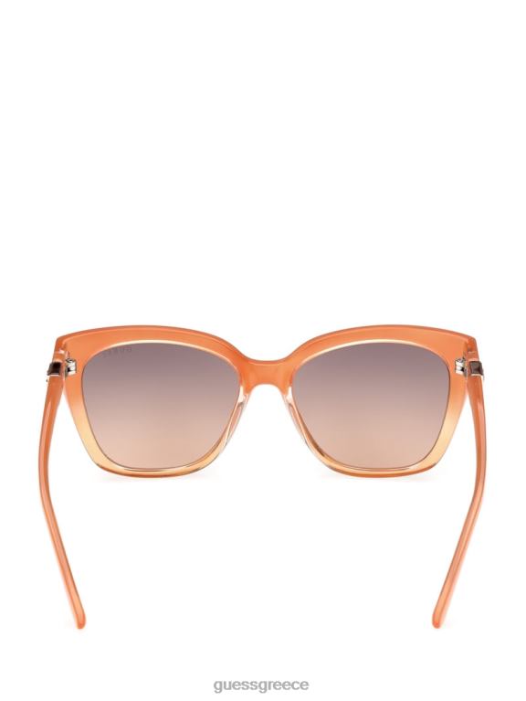 GUESS γυναίκες τετράγωνα πλαστικά γυαλιά ηλίου έμβλημα τριγώνου νέον πορτοκαλί αξεσουάρ J46DJ3708