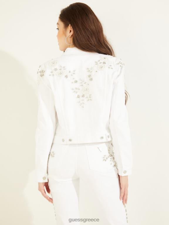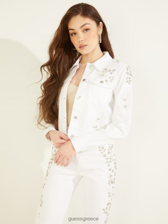 GUESS γυναίκες τζιν μπουφάν διακοσμημένο με ντίνιμ χρυσό λευκό ενδύματα J46DJ222