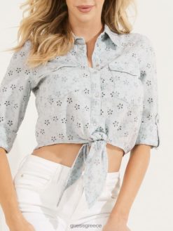 GUESS γυναίκες τζιν πουκάμισο με μάτι λουλούδι απαλό μπλε ενδύματα J46DJ232