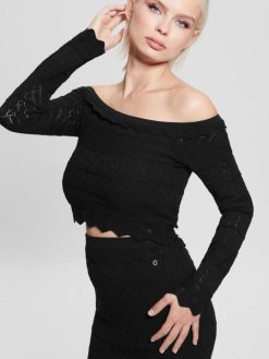 GUESS γυναίκες τοπ πουλόβερ eco pointelle deeta μαύρος ενδύματα J46DJ1508