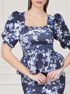 GUESS γυναίκες τοπ πόζα με πέταλο Alexis πέταλο πόζα indigo ενδύματα J46DJ1705