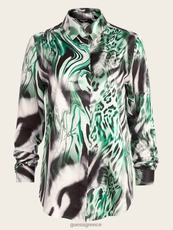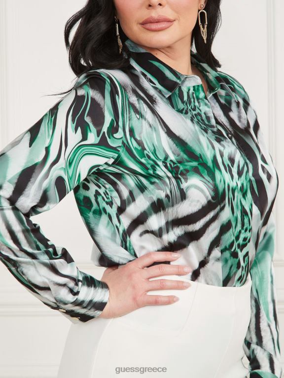 GUESS γυναίκες τζιν πουκάμισο με μάτι πράσινο λουλούδι ενδύματα J46DJ291