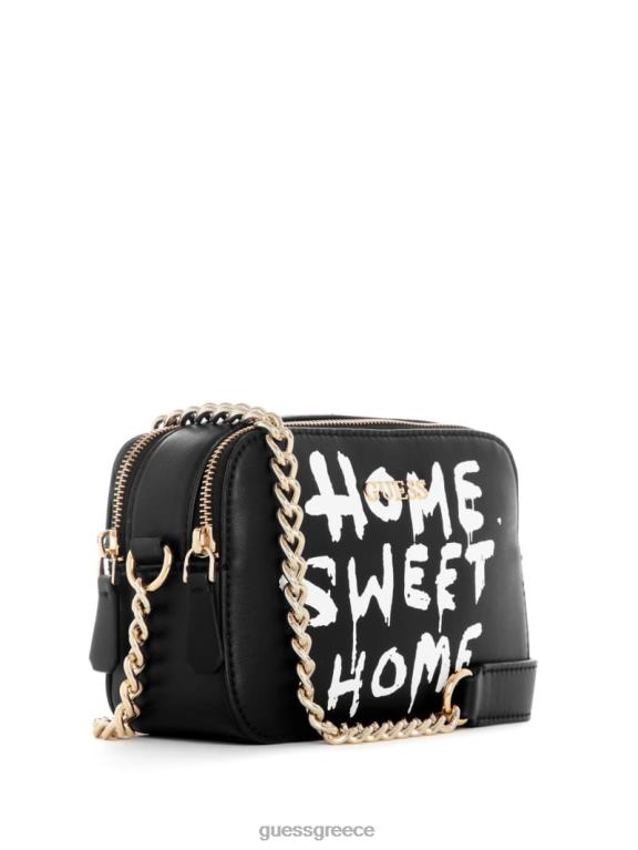 GUESS γυναίκες τσάντα φωτογραφικής μηχανής τέχνης γκράφιτι μαύρο φλοράλ στάμπα σακούλες J46DJ2925