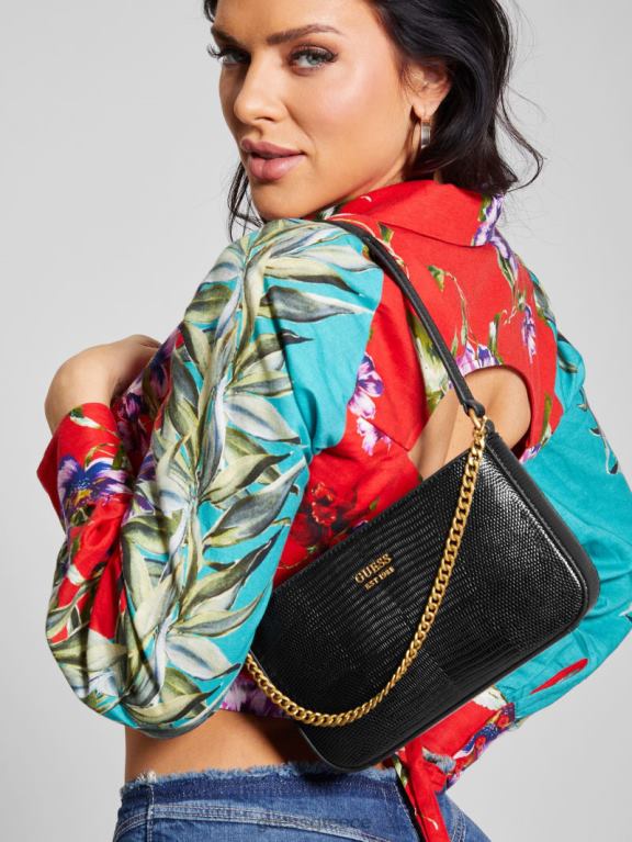 GUESS γυναίκες Τσάντα ώμου mini lizard katey μαύρο φλοράλ στάμπα σακούλες J46DJ3013