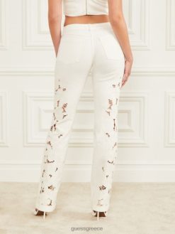 GUESS γυναίκες φλοράλ τζιν παντελόνι άσπρο ενδύματα J46DJ200
