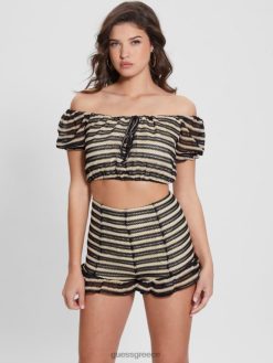 GUESS γυναίκες φουσκωμένο μανίκι από πλέγμα maya λευκό μαύρο συνδυασμό ενδύματα J46DJ932